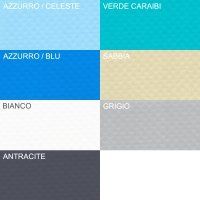 con finitura standard disponibile nei colori: azzurro, celeste, sabbia, bianco, grigio perla, grigio scuro, nero antracite, verde caraibi, verde aqua, pink, wild musk, rosso, giallo e grigio basalto.